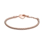 Náramok, unikátna zmes kovov pozlátená 14k ružovým zlatom. Hadíkovým náramkom Pandora Moments so srdiečkovým americkým zapínaním dodáte svojmu vzhľadu prvok teplého kovového odtieňa. Tento ručne dokončený kúsok z jedinečnej zmesi kovov pozlátenej 14-karátovým ružovým zlatom a predstavuje inovatívne poňatie hadíkového náramku Pandora Moments. Má srdiečkové uzatváranie s dvojitým kruhom a tyčinkou v tvare T, ktorá po svojom zasunutí do menšieho kruhu zaručí bezpečné uzavretie spony náramku. Na tento hladký moderný náramok môžete pridať 10 až 13 klasických a visiacich príveskov Pandora Moments. Kolekcia: Moments Materiál: Pozlátenie 14-karátovým ružovým zlatom Doplnkový materiál: No other material Farba: bez farby Kameň: Č kameň Téma: Láska PN_589285C00