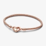 Náramok, unikátna zmes kovov pozlátená 14k ružovým zlatom. Obohaťte svoju zbierku s naším novým húsenicovým náramkom z jedinečnej zmesi kovov pozlátenej 14k ružovým zlatom kolekcie Pandora Moments. Ručne dokončený náramok má pružnú retiazku s textúrou a otvárateľnú srdiečkovú sponu, v ktorej je vnorený symbol nekonečna. Upozorňujeme, že tento retiazkový náramok nemá vyvýšené oddeľovacie pásiky. Na náramok môžete navliecť maximálne 14 až 18 klasických alebo visiacich príveskov. Na spone nie je možné nosiť prívesky. Odporúčame pridávať prívesky so silikónovými svorkami alebo prívesky zabezpečiť pomocou bezpečnostnej retiazky. Kolekcia: Náramky Pandora Moments Farba: bez farby PN_582731C00