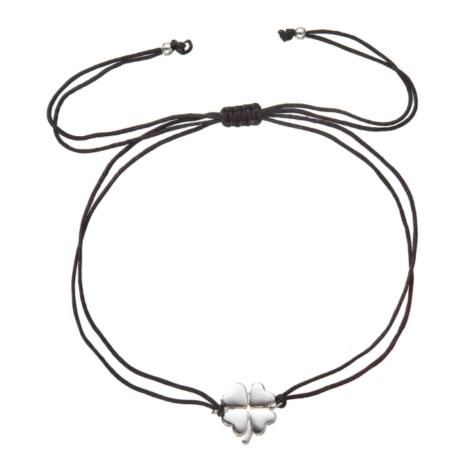 Dĺžka náramku 13047.3 sa reguluje posúvaním šnúrky v uzle, maximálne 25 cm. Strieborný štvorlístok je vyrobený z rhodiovaného striebra 925/1000 a môžu ho bez problémov nosiť aj alergici.