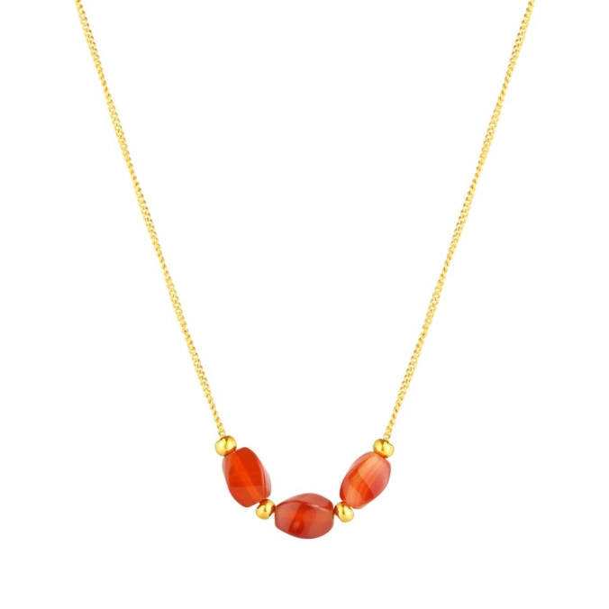 Náhrdelník s červeným achátom je nielen krásnym doplnkom, ale aj symbolom vnútornej sily. Jeho podlhovasté kamene dodávajú šperku jedinečný vzhľad.