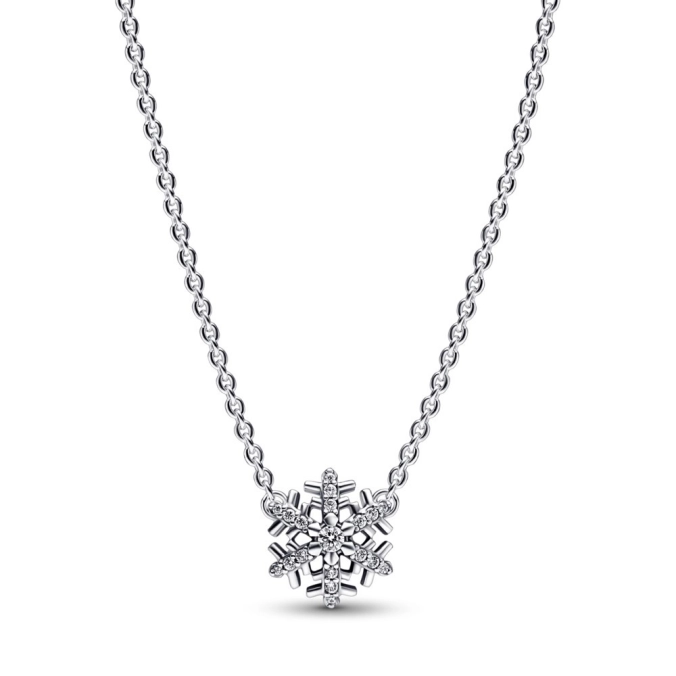 Prívesok, Šterlingové striebro, Oslávte to, čo nás robí jedinečnými prostredníctvom tohto náhrdelníka príveskom s trblietavou snehovou vločkou, vyrobeného zo šterlingového striebra. Tento filigránsky vypracovaný kúsok je vykladaný trblietavými čírymi kubickými zirkónmi a vyrezávanými a vyrazenými detailami, ktoré zachytávajú krásu snehových vločiek poletujúcich v zimnom vzduchu. Je to dokonalý darček, ktorým vyjadríte, aká výnimočná je pre vás vaša milovaná. Kolekcia: Moments Materiál: Srebro in 14k pozlata Doplnkový materiál: No other material Farba: bez farby Kameň: Kubický zirkón Téma: Príroda a obloha PN_392371C01-45