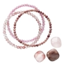 Jedinečná kombinácia ružových náramkov z prírodných minerálnych kameňov podporí Vašu duševnú a fyzickú rovnováhu. Každý, z troch náramkov, je vyrobený z kameňov, ktoré majú rôzne vlastnosti a energie. Popis každého druhu si môžete prečítať nižšie. Tento jemný náramok sa skladá z okrúhlych kamienkov, ktoré sa krásne farebne aj energicky dopĺňajú. Kamienky sú navlečené na elastickom vlákne, čo je vhodné pre rôzne veľkosti zápästia. Náramky sú skvelým darčekom pre každého, kto má rád prírodnú krásu a zaujíma sa o alternatívne spôsoby starostlivosti o duševnú a fyzickú pohodu.