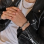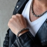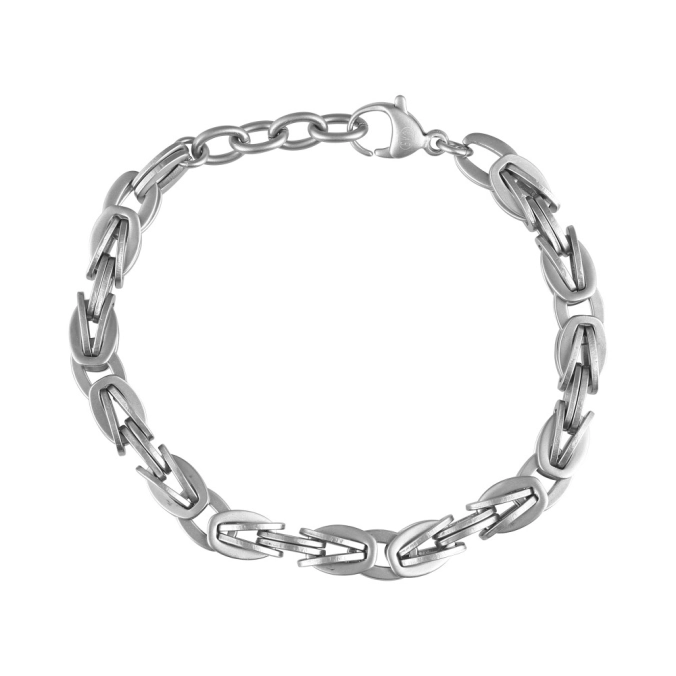 Masívny pánsky náramok z pieskovanej ocele, ktorý zaujme svojim robustným a moderným designom. Originálne do seba zapadajúce oká vytvárajú atraktívnu textúru a zaisťujú pevnosť aj pohodlie pri nosení. Povrchová úprava pieskovaním dodáva náramku matný a štýlový vzhľad, ideálny pre mužov, ktorí hľadajú výrazný doplnok. Nastaviteľná dĺžka 21+3 cm umožňuje prispôsobenie pre perfektné padnutie. Skvelá voľba pre milovníkov kvalitných a elegantných šperkov.