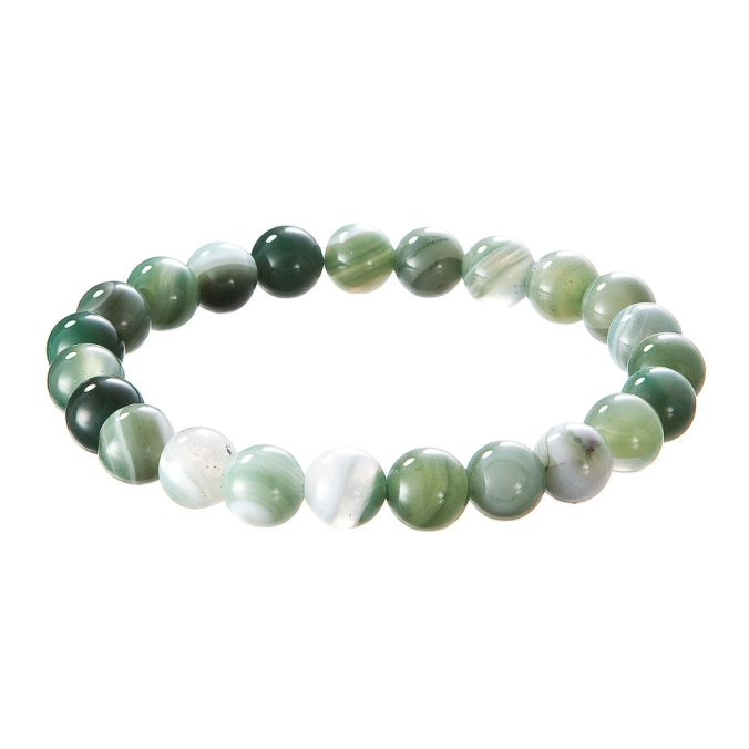 Zelený achát je považovaný za kameň obnovy, vnútorného pokoja a prepojenia s prírodou. Pomáha upokojiť myseľ, harmonizovať telo a dušu, a podporuje regeneráciu ako na fyzickej, tak na emočnej úrovni. Jeho jemná, uzemňujúca energia prináša pocit rovnováhy a bezpečia, najmä v období stresu a zmien. Vďaka elastickému prevedeniu sa náramok ľahko prispôsobí väčšine veľkostí zápästia a pohodlne sa nosí po celý deň.