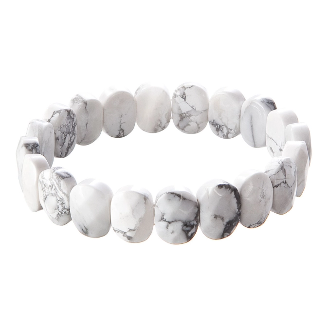 Zahaľte sa do jemnej elegancie s týmto nádherným náramkom z pravého howlitu. Namiesto klasických korálikov je zložený z oválnych kameňov s jemne brúsenými plochami, ktoré zaisťujú krásnu hru svetla a vynikajú svojou čistou bielou farbou s jemnými šedými žilkami, ktoré vytvárajú jedinečné prírodné vzory. Howlit je minerál, ktorý je známy svojimi upokojujúcimi vlastnosťami. Tento kameň má výnimočnú schopnosť prinášať vnútorný pokoj a harmóniu. Je obzvlášť vhodný pre meditačné praktiky a relaxáciu. Elastické prevedenie zaisťuje ľahké nosenie a pohodlné prispôsobenie zápästia.