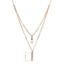 Tento dvojradový ružovo pozlátený strieborný náhrdelníks obdĺžnikom bohato vysadeným zirkónmi a guľôčkou má dĺžku 45 cm a je zdobený mnohými malými zirkónmi v bielej farbe iba na obdĺžniku. Na náhrdelník bolo použité striebro rýdzosti 925/1000. Neobsahuje nikel , a tak ho môžu bez obáv nosiť aj alergici. To všetko je dokonale zabalené v obálke s otvorom v tvare obláčika. Celý set je navyše v priehľadnom sáčku, aby všetko bolo dostatočne chránené.