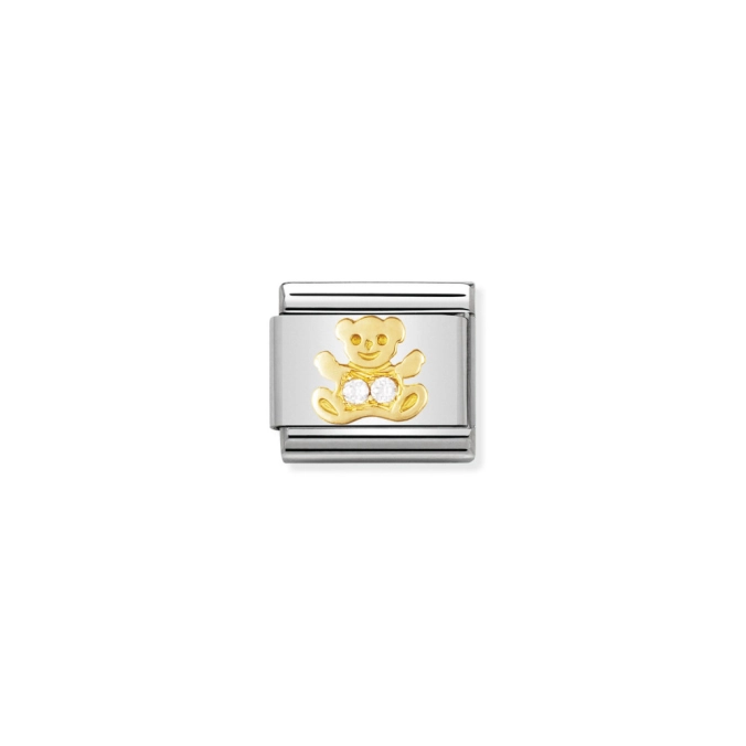 Nomination - šperky vyrobené v Taliansku z oceľe , striebra 925/1000, 9k ružového zlata a 18k zlata. Zdobené zirkónmi, farebnými kameňmi a glazúrou.