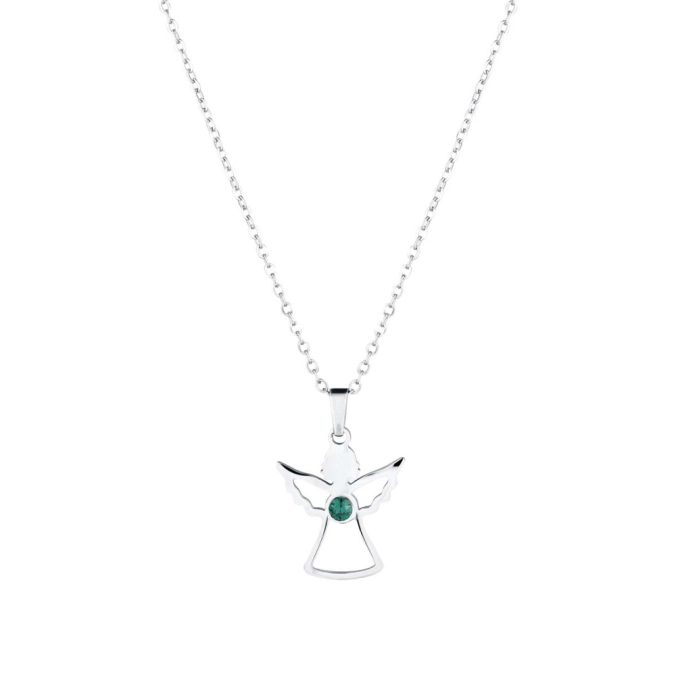 Oceľový náhrdelník anjel so Swarovski kryštálmi zelený 42043.3
