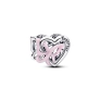 Pandora strieborný prívesok so srdcom a motýľom s trblietavou ružovou glazúrou