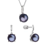 Súprava z peacock riečnych perál obsahuje náušnice a prívesok na striebornej retiazke . Peacock sladkovodné perly, ktorými sú šperky zdobené, majú veľmi vysoký lesk, pretože spadajú do kategórie kvality AAA . Farba perál peacock je meniaca sa z tmavo modrého až fialového odtieňa do zeleného až zlatého. Je ťažké túto farbu perličiek presne definovať, preto je nazvaná podľa páva, vždy iná, podľa uhla pohľadu a dopadu svetla . Nad každou perlou je navyše striebro vysadené trblietavými zirkónmi , ktoré upútajú pozornosť.