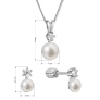 prívesok na striebornej retiazke . Sladkovodné perly, ktorými sú šperky zdobené, majú veľmi vysoký lesk, pretože spadajú do kategórie kvality