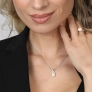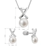prívesok na striebornej retiazke . Sladkovodné perly, ktorými sú šperky zdobené, majú veľmi vysoký lesk, pretože spadajú do kategórie kvality