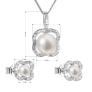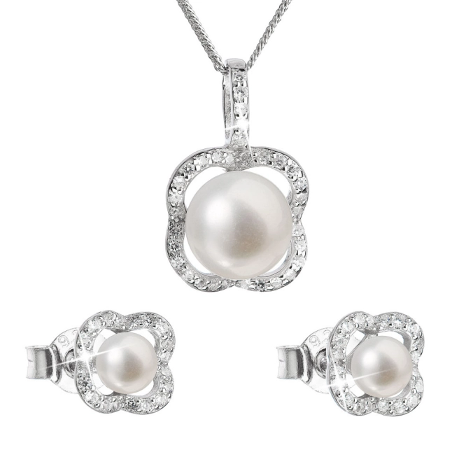 Súprava šperkov zahŕňa okrúhle náušnice v tvare kôstok a 45 cm dlhý náhrdelník so zaujímavým príveskom. Šperky sú vyrobené zo striebra rýdzosti 925/1000 vrátane povrchovej úpravy ródiom a dolaďujú ich riečne perly v bielej farbe z kategórie najvyššej kvality AAA a malé zirkóny, vďaka ktorým sa šperky nádherne blýskajú. Náhrdelník skrášľuje celkom 33 zirkónov a každá náušnica ich obsahuje 20. Šperky môžu bez obáv nosiť aj alergici, náhrdelník ani náušnice totiž neobsahujú nikel, a tak sa nemusíte obávať alergickej reakcie. Náušnice majú zapínanie na puzetu, ktorá ich spoľahlivo ochráni proti nechcenej strate.