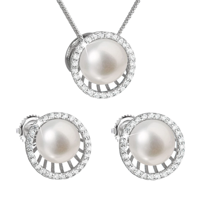 Súprava šperkov sa skladá z okrúhlych náušníc so zapínaním na skrutku a náhrdelníka s perlovým príveskom. Šperky sú vyrobené zo striebra o rýdzosti 925/1000 s povrchovou úpravou ródiom, obsahujú veľkú sladkovodnú perlu najvyššej kvality AAA a po celom svojom obvode sú posádzané blýskavými zirkónmi. Do šperkov zo súpravy 29034.1 nepridávame nikel, a tak ju bez obáv môžu užívať aj ľudia náchylní na alergické reakcie.