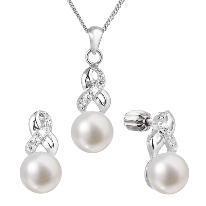 Súprava šperkov obsahuje náušnice a prívesok s retiazkou. Šperky sú zdobené riečnymi perlami najvyššej kvality AAA , ktoré ešte navyše dopĺňajú nádherne sa trblietajúce priezračné zirkóny. Šperky sú vyrobené zo striebra rýdzosti 925/1000, ktoré prešlo povrchovou úpravou ródiom. Striebro neobsahuje nikel , a tak je súprava vhodná aj pre alergikov. Náušnice sa zapínajú na balónik, ktorý ich spoľahlivo ochráni proti nechcenej strate.