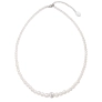 Perlový náhrdelník 32006.1 v dĺžke 45+5 cm je zložený z bielych syntetických perál a uprostred je gulička vysadená preciosa kryštálmi . Kryštály sú v bielej farbe. Na zapínanie náhrdelníka bolo použité striebro rýdzosti 925/1000, ktoré prešlo úpravou ródiom. Ródium striebro ochráni proti sčernaniu, zožltnutiu i poškriabaniu. Náhrdelník je vhodný aj pre alergikov, neobsahuje totiž nikel.