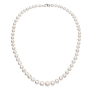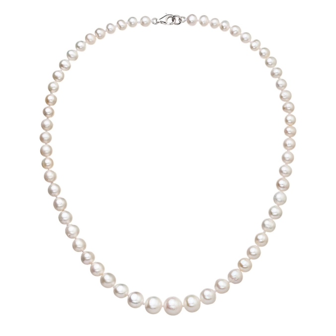 Perlový náhrdelník 22040.1 v dĺžke 46,5 cm je poskladaný z bielych riečnych perál, od veľkosti 6 mm až po 10 mm. Každá perla je zaistená uzlíkovou väzbou , a tak sa pri nechcenom pretrhnutí náhrdelníka nestane, že sa vám perly rozkotúľajú na všetky strany. Na zapínanie náhrdelníka bolo použité striebro rýdzosti 925/1000, ktoré prešlo úpravou ródiom. Ródium striebro ochráni proti sčernaniu, zožltnutiu i poškriabaniu. Náhrdelník je vhodný aj pre alergikov , neobsahuje totiž nikel.