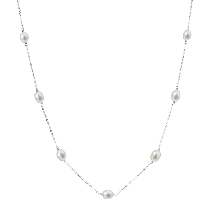 Náhrdelník je vyrobený zo striebra rýdzosti 925/1000 vrátane povchovej úpravy ródiom a po obvode ho zdobí niekoľko oválnych riečnych perál bielej farby . Perly spadajú do kategórie kvality AA . Do šperku nie je pridaný žiadny nikel , a tak ho môžu bez obáv nosiť aj alergici.