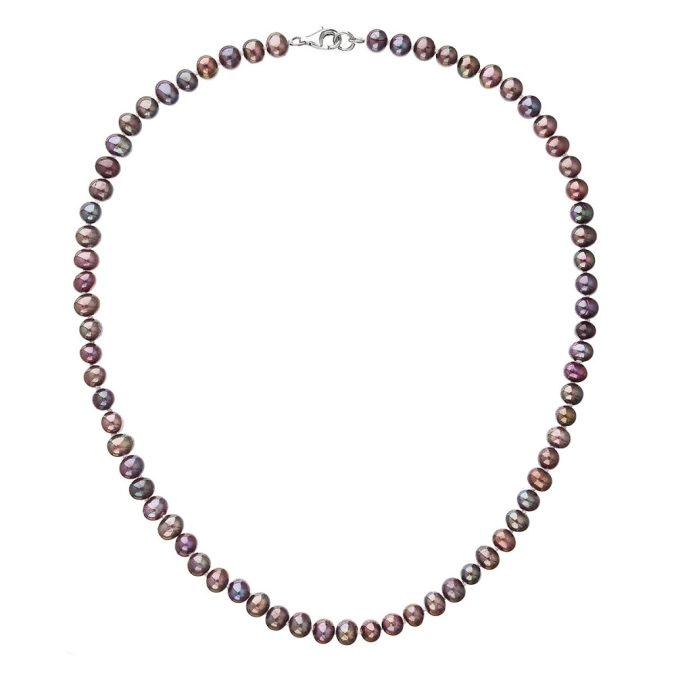 Jedinečný perlový náhrdelník 22037.3 so zapínaním na striebornú karabínku bude vo Vašom dekolte neprehliadnuteľný. Náhrdelník je navlečený z pravých riečnych perál kvality B , tmavo modrofialových odtieňov a je zaistený uzlíkovou väzbou, ktorá zabraňuje posúvaniu a poškodeniu perál trením o seba a rovnako chráni perly pred rozsypaním, pokiaľ sa náhrdelník náhodou pretrhne. Zapínanie v tvare karabínky je vyrobené zo striebra 925/1000 s ródiovou povrchovou úpravou.