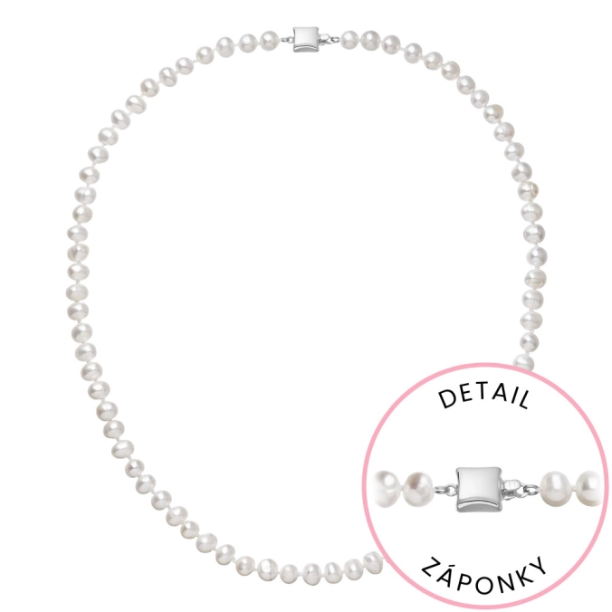 S náhrdelníkom z pravých sladkovodných kultivovaných riečnych perál budete v spoločnosti očarujúce! Jedinečný perlový náhrdelník 822001.1/9268B doplnený o zlaté 14-karátové zapínanie bude vo Vašom dekolte neprehliadnuteľný. Náhrdelník je navlečený z pravých riečnych perál vysokej kvality B a je zaistený uzlíkovou väzbou, ktorá zabraňuje posúvaniu a poškodeniu perál trením o seba a rovnako chráni perly pred rozsypaním, pokiaľ sa náhrdelník náhodou pretrhne. Zapínanie v tvare štvorca je vyrobené zo zlata rýdzosti 585/1000. Perlový náhrdelník so zlatým zapínaním pre Vás ručne vyrobili naše šikovné šperkárky, ktoré výrobe každého šperku venujú náležitú starostlivosť. O pravosti zlata a riečnych perál Vás presvedčí certifikát pravosti, ktorý je ku šperku priložený. Náhrdelník Vám dodáme v originálnej krabičke spolu s darčekovou taštičkou, ktorú od nás obdržíte zadarmo .