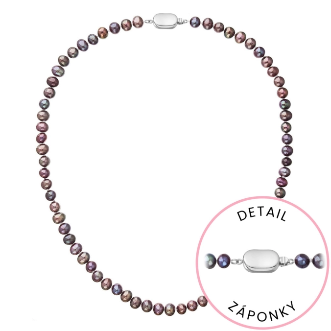 S náhrdelníkom z pravých sladkovodných kultivovaných riečnych perál budete v spoločnosti očarujúce! Jedinečný perlový náhrdelník 822001.3/9269B doplnený o zlaté 14-karátové zapínanie bude vo Vašom dekolte neprehliadnuteľný. Náhrdelník je navlečený z pravých riečnych perál vysokej kvality B a je zaistený uzlíkovou väzbou, ktorá zabraňuje posúvaniu a poškodeniu perál trením o seba a rovnako chráni perly pred rozsypaním, pokiaľ sa náhrdelník náhodou pretrhne. Zapínanie v tvare oválku je vyrobené zo zlata rýdzosti 585/1000 . Perlový náhrdelník so zlatým zapínaním pre Vás ručne vyrobili naše šikovné šperkárky, ktoré výrobe každého šperku venujú náležitú starostlivosť. O pravosti zlata a riečnych perál Vás presvedčí certifikát pravosti, ktorý je ku šperku priložený. Náhrdelník Vám dodáme v originálnej krabičke spolu s darčekovou taštičkou, ktorú od nás obdržíte zadarmo.
