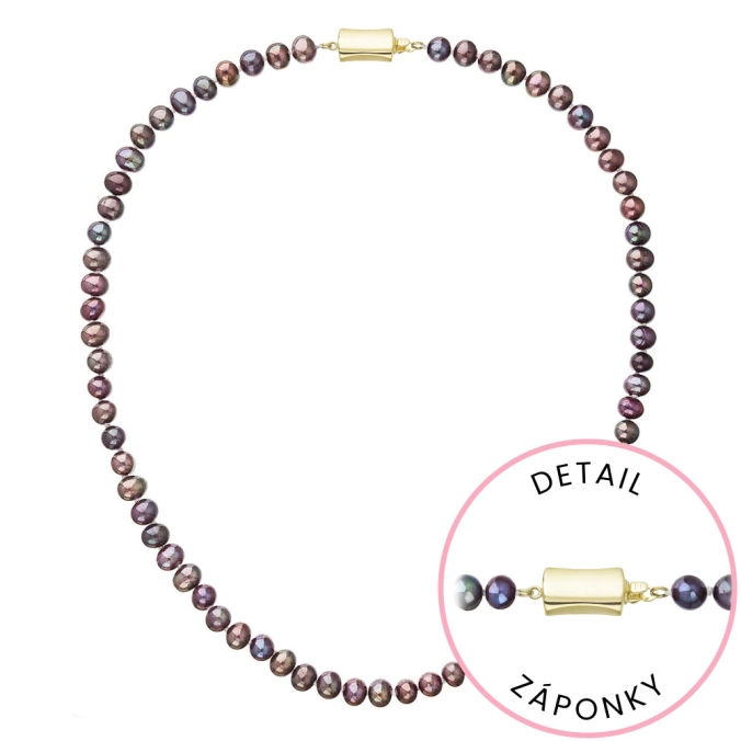 S náhrdelníkom z pravých sladkovodných kultivovaných riečnych perál budete v spoločnosti očarujúce! Jedinečný perlový náhrdelník 922001.3/9267A doplnený o zlaté 14-karátové zapínanie bude vo Vašom dekolte neprehliadnuteľný. Náhrdelník je navlečený z pravých riečnych perál vysokej kvality B a je zaistený uzlíkovou väzbou, ktorá zabraňuje posúvaniu a poškodeniu perál trením o seba a rovnako chráni perly pred rozsypaním, pokiaľ sa náhrdelník náhodou pretrhne. Zapínanie v tvare obdĺžnika je vyrobené zo zlata rýdzosti 585/1000 . Perlový náhrdelník so zlatým zapínaním pre Vás ručne vyrobili naše šikovné šperkárky, ktoré výrobe každého šperku venujú náležitú starostlivosť. O pravosti zlata a riečnych perál Vás presvedčí certifikát pravosti, ktorý je ku šperku priložený. Náhrdelník Vám dodáme v originálnej krabičke spolu s darčekovou taštičkou, ktorú od nás obdržíte zadarmo.