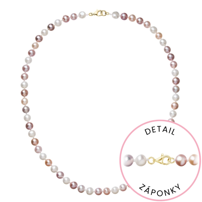 S náhrdelníkom z pravých sladkovodných kultivovaných riečnych perál budete v spoločnosti očarujúce! Jedinečný perlový náhrdelník 922004.3/9260 doplnený o zlaté 14-karátové zapínanie bude vo Vašom dekolte neprehliadnuteľný. Náhrdelník je navlečený z pravých riečnych perál vysokej kvality A a je zaistený uzlíkovou väzbou, ktorá zabraňuje posúvaniu a poškodeniu perál trením o seba a taktiež chráni perly pred rozsypaním, pokiaľ sa náhrdelník náhodou pretrhne. Zapínanie v tvare karabínky je vyrobené zo zlata rýdzosti 585/1000 . Perlový náhrdelník so zlatým zapínaním pre Vás ručne vyrobili naše šikovné šperkárky, ktoré výrobe každého šperku venujú náležitú starostlivosť. O pravosti zlata a riečnych perál Vás presvedčí certifikát pravosti, ktorý je ku šperku priložený. Náhrdelník Vám dodáme v originálnej krabičke spolu s darčekovou taštičkou, ktorú od nás obdržíte zadarmo.