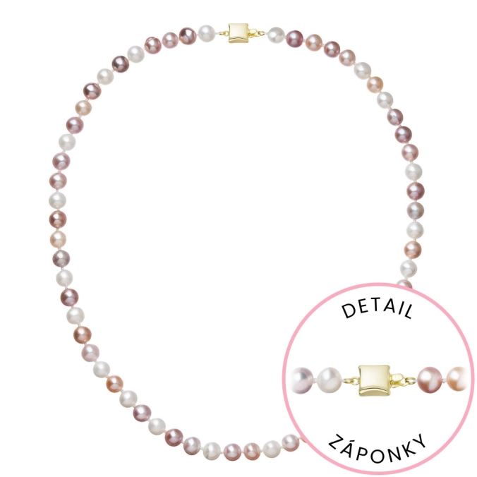 S náhrdelníkom z pravých sladkovodných kultivovaných riečnych perál budete v spoločnosti očarujúce! Jedinečný perlový náhrdelník 922004.3/9268A doplnený o zlaté 14-karátové zapínanie bude vo Vašom dekolte neprehliadnuteľný. Náhrdelník je navlečený z pravých riečnych perál vysokej kvality A a je zaistený uzlíkovou väzbou, ktorá zabraňuje posúvaniu a poškodeniu perál trením o seba a taktiež chráni perly pred rozsypaním, pokiaľ sa náhrdelník náhodou pretrhne. Zapínanie v tvare štvorca je vyrobené zo zlata rýdzosti 585/1000 . Perlový náhrdelník so zlatým zapínaním pre Vás ručne vyrobili naše šikovné šperkárky, ktoré výrobe každého šperku venujú náležitú starostlivosť. O pravosti zlata a riečnych perál Vás presvedčí certifikát pravosti, ktorý je ku šperku priložený. Náhrdelník Vám dodáme v originálnej krabičke spolu s darčekovou taštičkou, ktorú od nás obdržíte zadarmo .