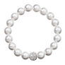 krásne zvýrazní vašu ruku. Náramok 33074.1 je navlečený z bielych okrúhlych perál, medzi ktoré je vložená gulička bohato vysadená Swarovski kryštálmi. Kryštály sú v bielej farbe. Keďže náramok