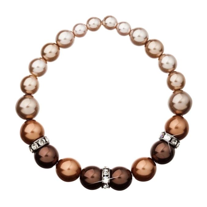 Náramok 33016.3 je navlečený z rôzne veľkých hnedých a bronzových okrúhlych perál, medzi ktoré sú vložené tri okrúhle rondelky vysadené