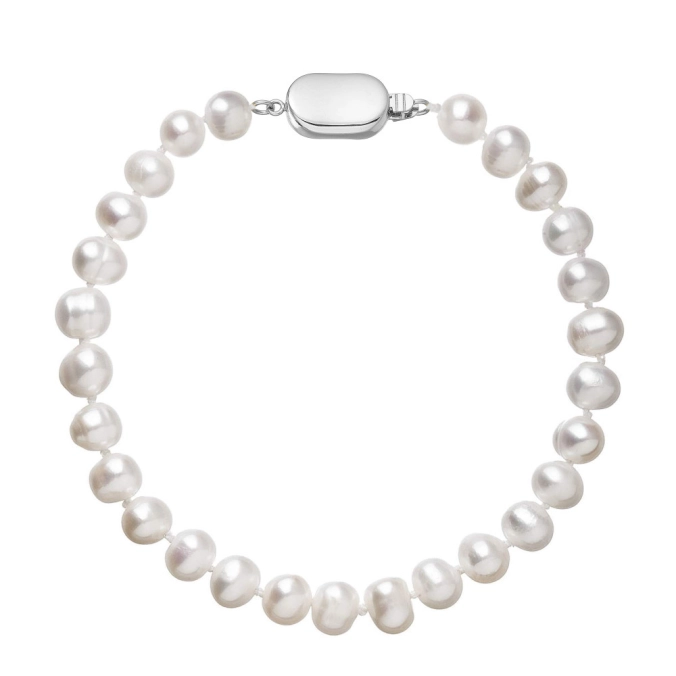 S náramkom z pravých sladkovodných kultivovaných riečnych perál budete v spoločnosti očarujúce! Jedinečný perlový náramok 823001.1/9269B doplnený o zlaté 14-karátové zapínanie bude vo Vašom dekolte neprehliadnuteľný. Náramok je navlečený z pravých riečnych perál vysokej kvality B a je zaistený uzlíkovou väzbou, ktorá zabraňuje posúvaniu a poškodeniu perál trením o seba a rovnako chráni perly pred rozsypaním, pokiaľ sa náramok náhodou pretrhne. Zapínanie v tvare oválku je vyrobené zo zlata rýdzosti 585/1000 . Perlový náramok so zlatým zapínaním pre Vás ručne vyrobili naše šikovné šperkárky, ktoré výrobe každého šperku venujú náležitú starostlivosť. O pravosti zlata a riečnych perál Vás presvedčí certifikát pravosti, ktorý je ku šperku priložený. Náramok Vám dodáme v originálnej krabičke spolu s darčekovou taštičkou, ktorú od nás obdržíte zadarmo.