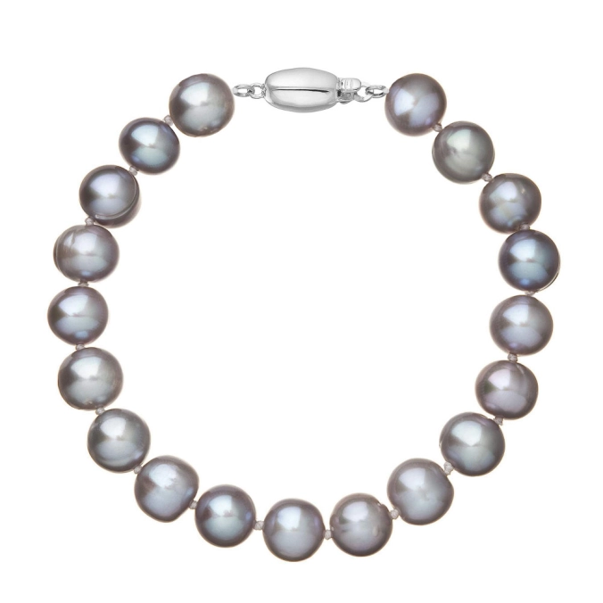 S náramkom z pravých sladkovodných kultivovaných riečnych perál budete v spoločnosti očarujúce! Jedinečný perlový náramok 823010.3/9271 B doplnený o zlaté 14-karátové zapínanie bude vo Vašom dekolte neprehliadnuteľný. Náramok je navlečený z pravých riečnych perál vysokej kvality A a je zaistený uzlíkovou väzbou, ktorá zabraňuje posúvaniu a poškodeniu perál trením o seba a rovnako chráni perly pred rozsypaním, pokiaľ sa náramok náhodou pretrhne. Zapínanie v tvare oválku je vyrobené zo zlata rýdzosti 585/1000 . Perlový náramok so zlatým zapínaním pre Vás ručne vyrobili naše šikovné šperkárky, ktoré výrobe každého šperku venujú náležitú starostlivosť. O pravosti zlata a riečnych perál Vás presvedčí certifikát pravosti, ktorý je ku šperku priložený. Náramok Vám dodáme v originálnej krabičke spolu s darčekovou taštičkou, ktorú od nás obdržíte zadarmo.