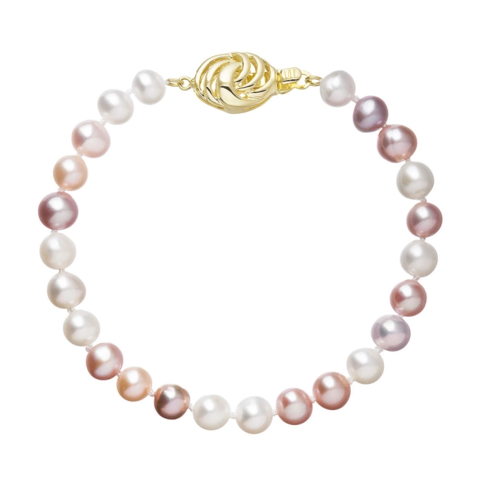 S náramkom z pravých sladkovodných kultivovaných riečnych perál budete v spoločnosti očarujúce! Jedinečný perlový náramok 923004.3/9265A doplnený o zlaté 14-karátové zapínanie bude vo Vašom dekolte neprehliadnuteľný. Náramok je navlečený z pravých riečnych perál vysokej kvality A a je zaistený uzlíkovou väzbou, ktorá zabraňuje posúvaniu a poškodeniu perál trením o seba a rovnako chráni perly pred rozsypaním, pokiaľ sa náramok náhodou pretrhne. Zapínanie v tvare zdobeného oválku je vyrobené zo zlata rýdzosti 585/1000 . Perlový náramok so zlatým zapínaním pre Vás ručne vyrobili naše šikovné šperkárky, ktoré výrobe každého šperku venujú náležitú starostlivosť. O pravosti zlata a riečnych perál Vás presvedčí certifikát pravosti, ktorý je ku šperku priložený. Náramok Vám dodáme v originálnej krabičke spolu s darčekovou taštičkou, ktorú od nás obdržíte zadarmo.