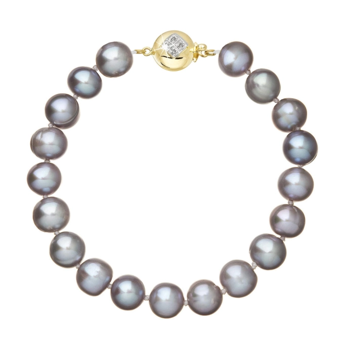 S náramkom z pravých sladkovodných kultivovaných riečnych perál budete v spoločnosti očarujúce! Jedinečný perlový náramok 923010.3/9270A doplnený o zlaté 14-karátové zapínanie bude vo Vašom dekolte neprehliadnuteľný. Náramok je navlečený z pravých riečnych perál vysokej kvality A a je zaistený uzlíkovou väzbou, ktorá zabraňuje posúvaniu a poškodeniu perál trením o seba a rovnako chráni perly pred rozsypaním, pokiaľ sa náramok náhodou pretrhne. Zapínanie v tvare guličky ozdobené briliantmi o celkovej váhe 0,024 ct. je vyrobené zo zlata rýdzosti 585/1000 . Perlový náramok so zlatým zapínaním pre Vás ručne vyrobili naše šikovné šperkárky, ktoré výrobe každého šperku venujú náležitú starostlivosť. O pravosti zlata, riečnych perál a briliantov Vás presvedčí certifikát pravosti, ktorý je ku šperku priložený. Náramok Vám dodáme v originálnej krabičke spolu s darčekovou taštičkou, ktorú od nás obdržíte zadarmo.