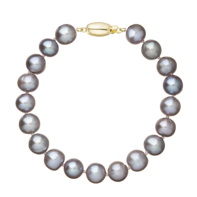 S náramkom z pravých sladkovodných kultivovaných riečnych perál budete v spoločnosti očarujúce! Jedinečný perlový náramok 923010.3/9271A doplnený o zlaté 14-karátové zapínanie bude vo Vašom dekolte neprehliadnuteľný. Náramok je navlečený z pravých riečnych perál vysokej kvality A a je zaistený uzlíkovou väzbou, ktorá zabraňuje posúvaniu a poškodeniu perál trením o seba a rovnako chráni perly pred rozsypaním, pokiaľ sa náramok náhodou pretrhne. Zapínanie v tvare oválku je vyrobené zo zlata rýdzosti 585/1000 . Perlový náramok so zlatým zapínaním pre Vás ručne vyrobili naše šikovné šperkárky, ktoré výrobe každého šperku venujú náležitú starostlivosť. O pravosti zlata a riečnych perál Vás presvedčí certifikát pravosti, ktorý je ku šperku priložený. Náramok Vám dodáme v originálnej krabičke spolu s darčekovou taštičkou, ktorú od nás obdržíte zadarmo.