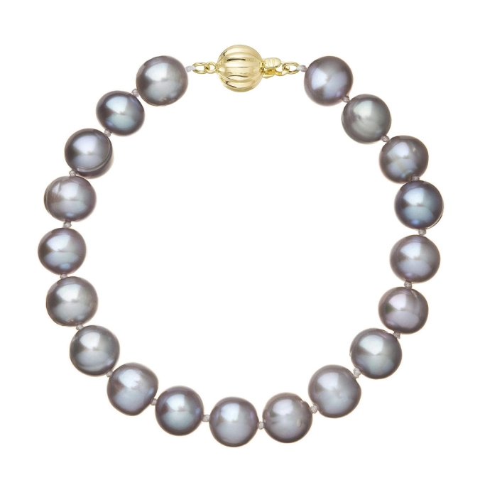 S náramkom z pravých sladkovodných kultivovaných riečnych perál budete v spoločnosti očarujúce! Jedinečný perlový náramok 923010.3/9272A doplnený o zlaté 14-karátové zapínanie bude vo Vašom dekolte neprehliadnuteľný. Náramok je navlečený z pravých riečnych perál vysokej kvality A a je zaistený uzlíkovou väzbou, ktorá zabraňuje posúvaniu a poškodeniu perál trením o seba a rovnako chráni perly pred rozsypaním, pokiaľ sa náramok náhodou pretrhne. Zapínanie v tvare zdobenej guličky je vyrobené zo zlata rýdzosti 585/1000 . Perlový náramok so zlatým zapínaním pre Vás ručne vyrobili naše šikovné šperkárky, ktoré výrobe každého šperku venujú náležitú starostlivosť. O pravosti zlata a riečnych perál Vás presvedčí certifikát pravosti, ktorý je ku šperku priložený. Náramok Vám dodáme v originálnej krabičke spolu s darčekovou taštičkou, ktorú od nás obdržíte zadarmo.
