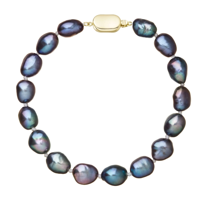 S náramkom z pravých sladkovodných kultivovaných riečnych perál budete v spoločnosti očarujúce! Jedinečný perlový náramok 923011.3/9269A doplnený o zlaté 14-karátové zapínanie bude vo Vašom dekolte neprehliadnuteľný. Náramok je navlečený z pravých riečnych perál vysokej kvality A a je zaistený uzlíkovou väzbou, ktorá zabraňuje posúvaniu a poškodeniu perál trením o seba a rovnako chráni perly pred rozsypaním, pokiaľ sa náramok náhodou pretrhne. Zapínanie v tvare oválku je vyrobené zo zlata rýdzosti 585/1000 . Perlový náramok so zlatým zapínaním pre Vás ručne vyrobili naše šikovné šperkárky, ktoré výrobe každého šperku venujú náležitú starostlivosť. O pravosti zlata a riečnych perál Vás presvedčí certifikát pravosti, ktorý je ku šperku priložený. Náramok Vám dodáme v originálnej krabičke spolu s darčekovou taštičkou, ktorú od nás obdržíte zadarmo.