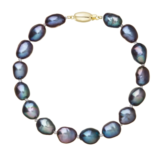 S náramkom z pravých sladkovodných kultivovaných riečnych perál budete v spoločnosti očarujúce! Jedinečný perlový náramok 923011.3/9271A doplnený o zlaté 14-karátové zapínanie bude vo Vašom dekolte neprehliadnuteľný. Náramok je navlečený z pravých riečnych perál vysokej kvality A a je zaistený uzlíkovou väzbou, ktorá zabraňuje posúvaniu a poškodeniu perál trením o seba a rovnako chráni perly pred rozsypaním, pokiaľ sa náramok náhodou pretrhne. Zapínanie v tvare oválku je vyrobené zo zlata rýdzosti 585/1000 . Perlový náramok so zlatým zapínaním pre Vás ručne vyrobili naše šikovné šperkárky, ktoré výrobe každého šperku venujú náležitú starostlivosť. O pravosti zlata a riečnych perál Vás presvedčí certifikát pravosti, ktorý je ku šperku priložený. Náramok Vám dodáme v originálnej krabičke spolu s darčekovou taštičkou, ktorú od nás obdržíte zadarmo.