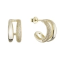 Pozlátené náušnice s dvojitými kruhmi ponúkajú elegantný dizajn, ktorý kombinuje hladkú a zirkónmi vysadenú časť. Tento kontrast vytvára harmóniu medzi jednoduchosťou a luxusom.