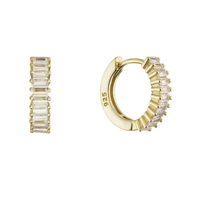 Pozlátené striebro a baguette zirkónmi dodávajú náušniciam luxusný vzhľad, ktorý zaujme na prvý pohľad.