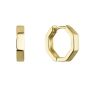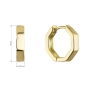 Tieto pozlátené kruhové náušnice vás zaujmú na prvý pohľad svojim neobvyklým tvarom . Nejde o klasické okrúhle kruhy - ich dizajn je jemne hranatý, zaoblený do mäkkých línií, ktoré dodávajú moderný a sofistikovaný vzhľad. Hladký povrch bez zdobenia necháva vyniknúť tvar aj lesk kovu.