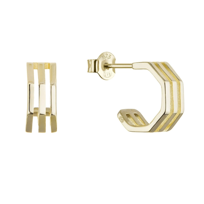 Pozlátené náušnice hranaté polkruhy zaujmú svojim geometrickým tvarom v tvare splošteného šesťuholníka.