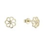 Náušnice v tvare kvietkov sú vyrobené z pozláteného striebra rýdzosti 925/1000. V srdci každého kvetu sa potom trblieta iskrivý zirkón, ktorý ako kvapka rosy chytá a odráža svetlo, a dodáva tak šperku nádych okúzľujúceho luxusu.