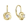 Pozlátené strieborné náušnice sú formované do podoby jemne zakriveného víru na hladine vody. Lesklý zlatý povrch pripomína zrkadlo vody v strede ktorého sa trblieta číry zirkón, odrážajúci svetlo a tvorí tak elegantný prírodný motív. Náušnice 11507.1 sú vyrobené z pozlátenéhostriebra rýdzosti 925/1000. Náušnice zdobia číry zirkón a zapínanie je na klapku. Šperk neobsahuje nikel , a tak sa nemusíte obávať žiadne alergické reakcie. Šperk vám dodáme v bielej krabičke spolu s taštičkou zadarmo .