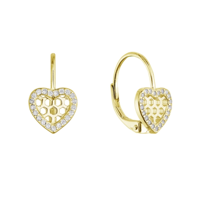 Láska na prvý pohľad – presne to sú tieto očarujúce srdiečkové náušnice. Srdiečko sa pýši trblietavými zirkónmi v obryse , ktoré pri každom pohybe rozohrajú magickú hru svetiel, vo vnútri srdiečok sú malé otvory, celkovo tak náušnice pôsobia ako jahôdky. Šperk je vyrobený z prvotriedneho striebra rýdzosti 925/1000, pozlátený povrch a poteší aj dámy s citlivou pleťou, pretože neobsahuje nikel . Vďaka praktickému zapínaniu na klapku vám náušnice budú robiť radosť od rána do večera. Ich nadčasový dizajn si zamilujete - skvele doplnia ako džínsy a tričko. Pridajte do svojho šperkovnice kúsok, ktorý rozpráva príbeh o láske.
