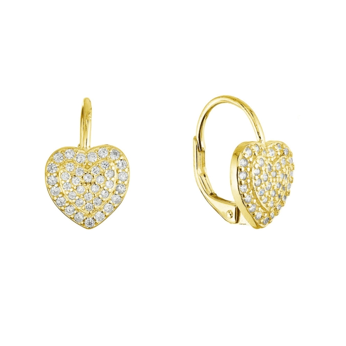 Náušnice v tvare srdiečok - pre romantické duše s vycibreným vkusom. Náušnice 11714.1 vyrobené zo striebra rýdzosti 925/1000 nie sú len krásne, trblietavé. Povrchovo pozlátené. Spoľahlivé zapínanie na klapku zaistí, že vám zostanú verné pri všetkých vašich dobrodružstvách. Každé srdiečko sme vysadili trblietavými zirkónmi, ktoré sa rozžiaria pri najmenšom pohybe - ako by zachytávali všetky šťastné momenty vášho dňa. Náušnice neobsahujú nikel , sú teda vhodné aj pre alergikov.