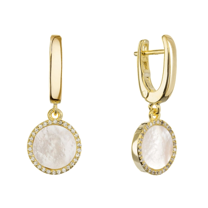 Náušnice sú vyrobené zo striebra rýdzosti 925/1000 s pozlátenou úpravou, ktorá dodáva šperku teplý lesk a nádych luxusu. Ich jedinečný dizajn kombinuje jemnosť a eleganciu - pravá biela perleť v okrúhlom tvare sa pri každom pohybe ľahko pohupuje, čím vytvára takmer éterický a živý šperk. Perleťový povrch jemne hrá všetkými odtieňmi bielej a striebornej, pripomínajúcej ranný svit na morskej hladine. Zapínanie na ruský patent potom zaisťuje pohodlné a spoľahlivé nosenie.