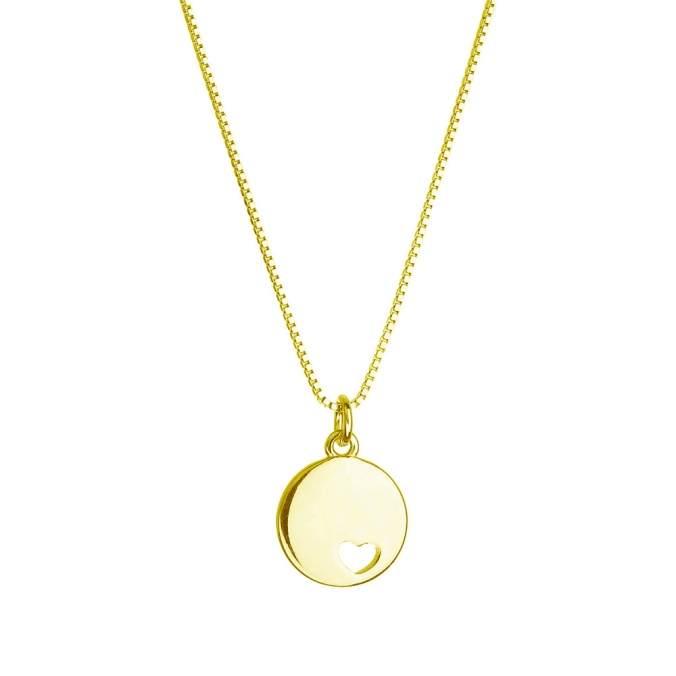 Elegantný pozlátený strieborný náhrdelník s moderným príveskom v tvare lesklej placky navyše s malým srdiečkom vo vnútri. Jednoduchý a nápaditý design. Choďte s módou!