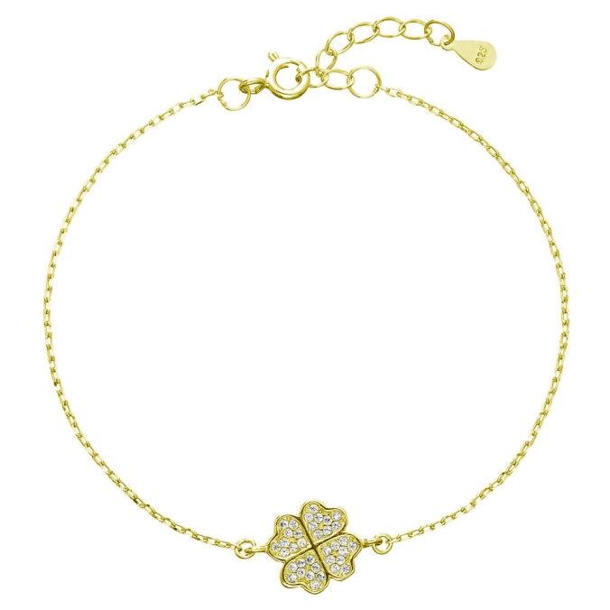 Parametre pozláteného náramku s bielymi zirkónmi štvorlístok 13008.1