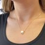 Prívesok je s retiazkou pevne spojený, je v tvare kruhu s bielou perlou uprostred . Pre ešte väčší lesk a eleganciu je kruh doplnený o niekoľko malých trblietavých zirkónov . Pravá riečna perla spadá do kategórie kvality AA , je okrúhleho tvaru a má bielu farbu. Na výrobu náhrdelníka bolo použité pozlátené striebro o rýdzosti 925/1000 . Keďže šperk neobsahuje žiadny prídavok niklu , môžu ho bez obáv nosiť aj alergici.
